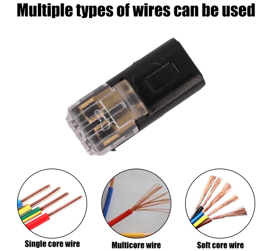 Tương thích với nhiều loại dây khác nhau như dây cứng lõi đơn, dây mềm hoặc dây đa lõi.