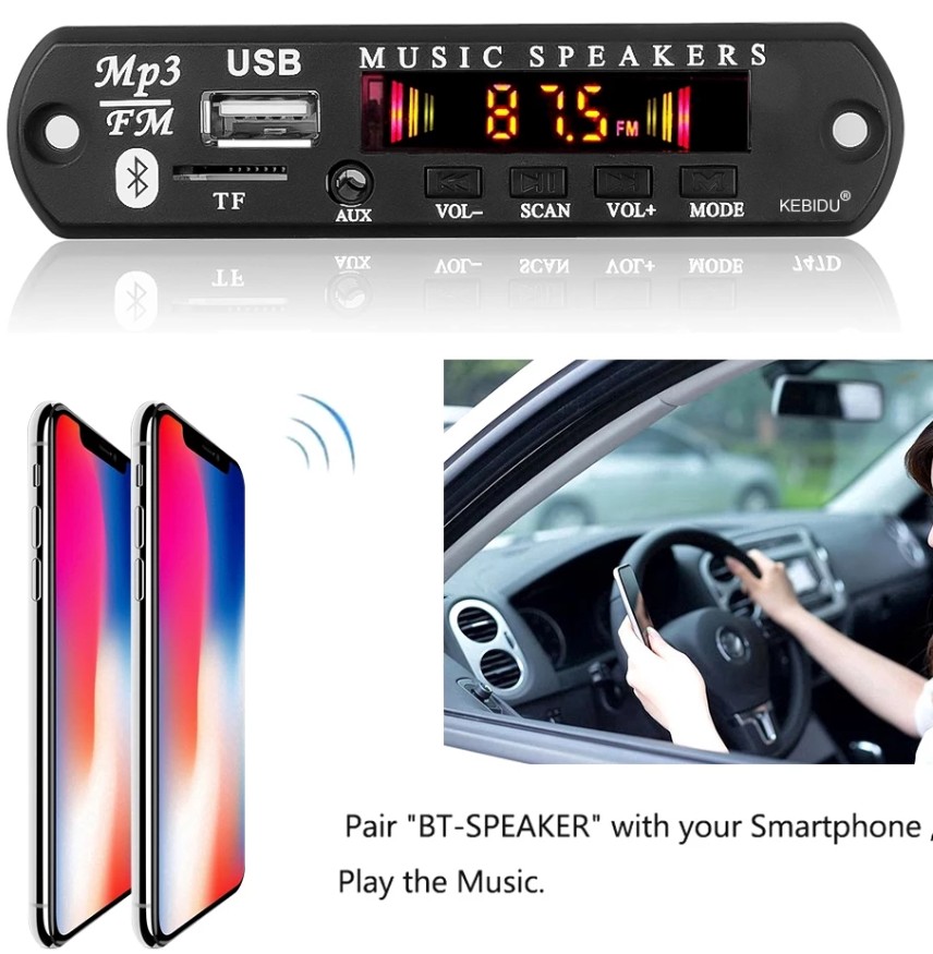 Kết nối Bluetooth 5.0 không dây: Hỗ trợ ghép nối với điện thoại, máy tính bảng, hay thiết bị phát nhạc khác để phát nhạc MP3, WMA trực tiếp mà không cần dây cáp.