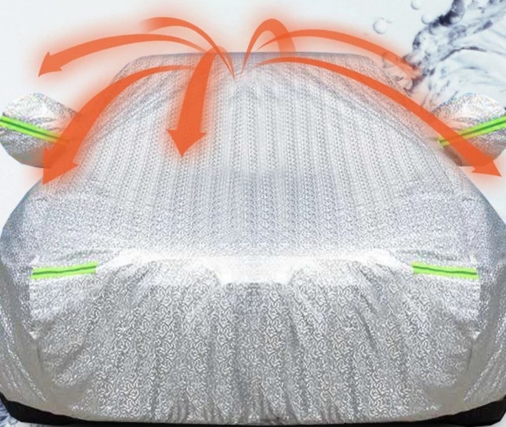 Chống nóng và chống xước: Mặt ngoài màu trắng nhôm phản xạ nhiệt, mặt trong lớp bông mềm giúp chống xước sơn xe.