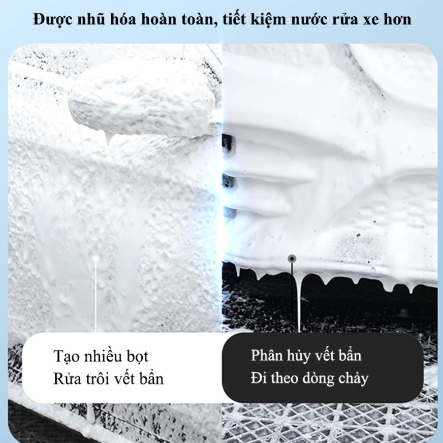 Tạo bọt tuyết nhanh và mịn, giúp rửa xe sạch hơn, hạn chế trầy xước bề mặt sơn.