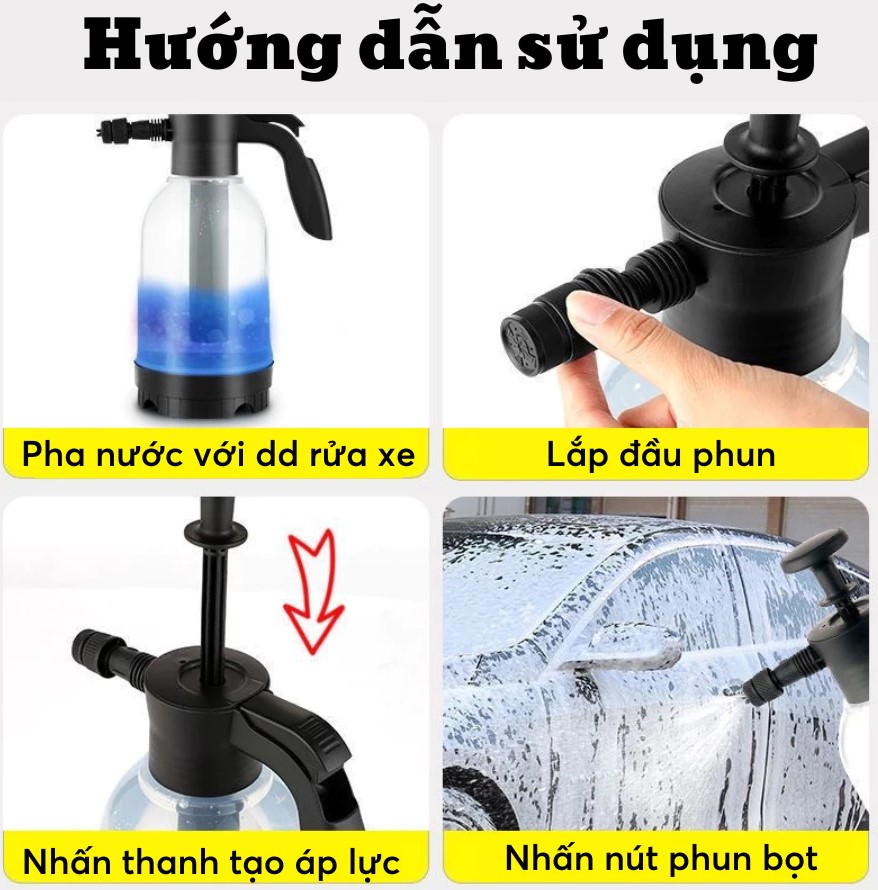 Dung tích 2 lít tiện dụng, đủ dùng cho 1–2 lần rửa xe.