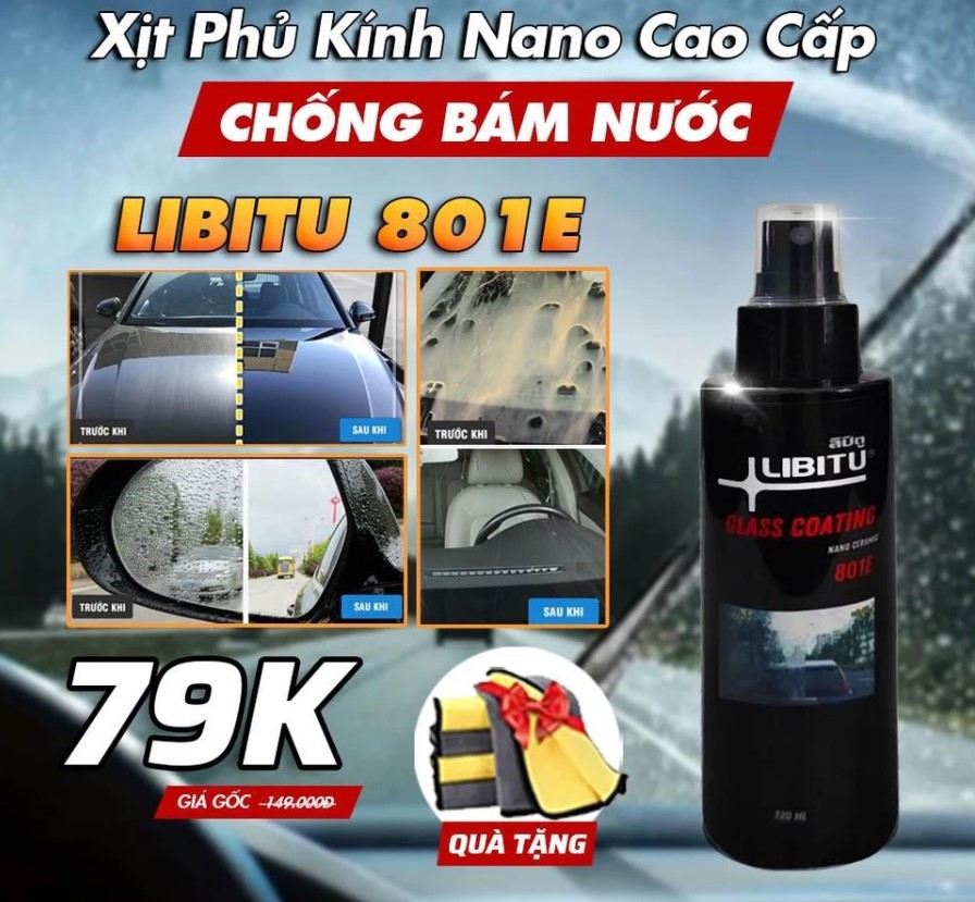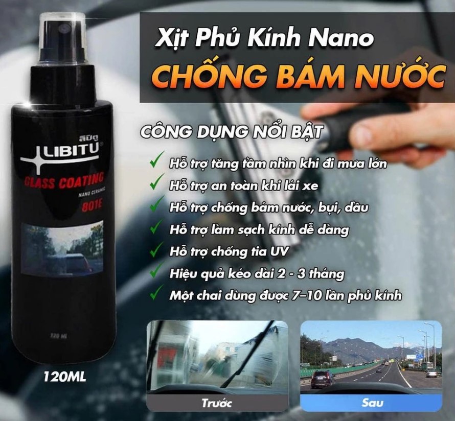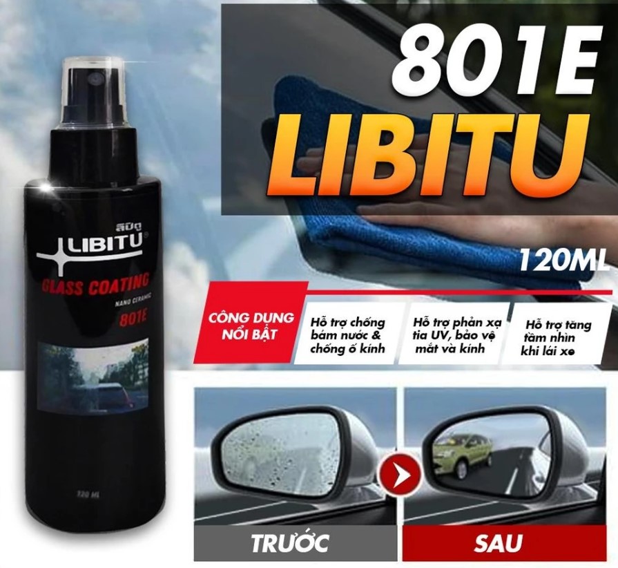 Bình xịt phủ kính nano LIBITU 801E là giải pháp hoàn hảo giúp bạn chống bám nước, chống bám dầu và bụi bẩn trên kính xe. Với công nghệ phủ nano tiên tiến, sản phẩm tạo nên hiệu ứng lá sen, giúp nước trượt nhanh khỏi bề mặt kính, mang lại tầm nhìn rõ nét và an toàn khi lái xe dưới mưa hoặc ban đêm.