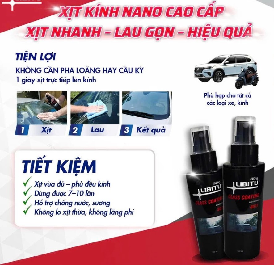 Dễ sử dụng, tiết kiệm thời gian: Chỉ cần vài bước đơn giản là có thể hoàn tất quá trình phủ nano, phù hợp cho cả ô tô và xe máy.