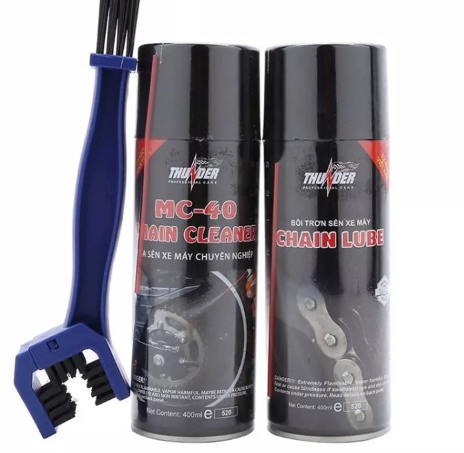 Với sự kết hợp giữa dung dịch vệ sinh sên MC-40, dầu bôi trơn sên Thunder Chain Lube và bàn chải chà sên chuyên nghiệp, bộ combo giúp sên xe luôn sạch sẽ, vận hành êm ái, hạn chế tiếng ồn và giảm hao mòn tối đa.