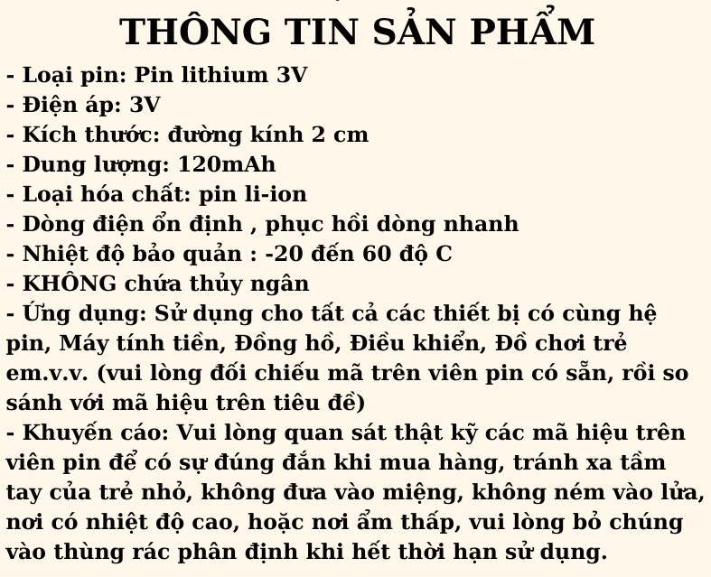 (Lưu ý: đối chiếu mã pin trước khi mua để đảm bảo phù hợp)