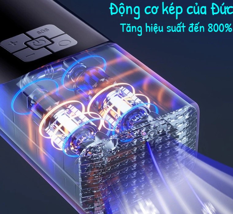 Motor không chổi than giúp bơm êm, bền, tốc độ cao.