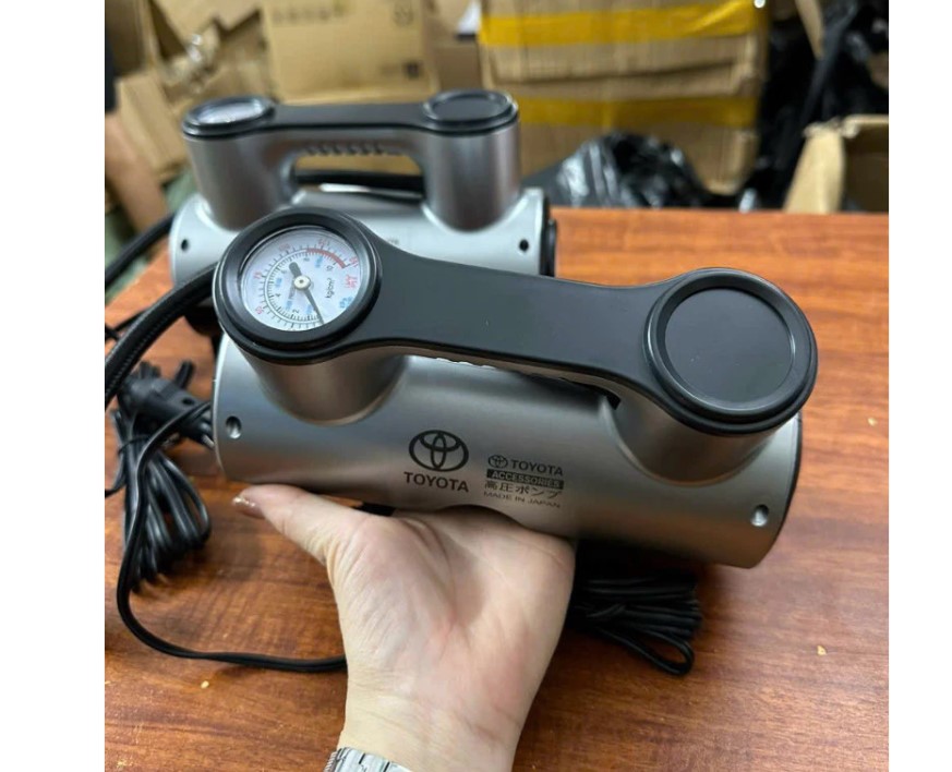 Máy bơm lốp ô tô TOYOTA 12V là dòng máy bơm di động cao cấp, được thiết kế dành riêng cho các dòng xe ô tô gia đình, xe bán tải, SUV và xe thương mại nhỏ. Sản phẩm sở hữu động cơ mạnh mẽ, bơm nhanh trong thời gian ngắn, tích hợp đồng hồ đo áp suất điện tử chính xác, cùng chế độ tự ngắt khi đạt đủ áp suất, đảm bảo an toàn tuyệt đối cho lốp xe.