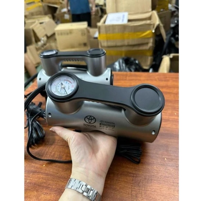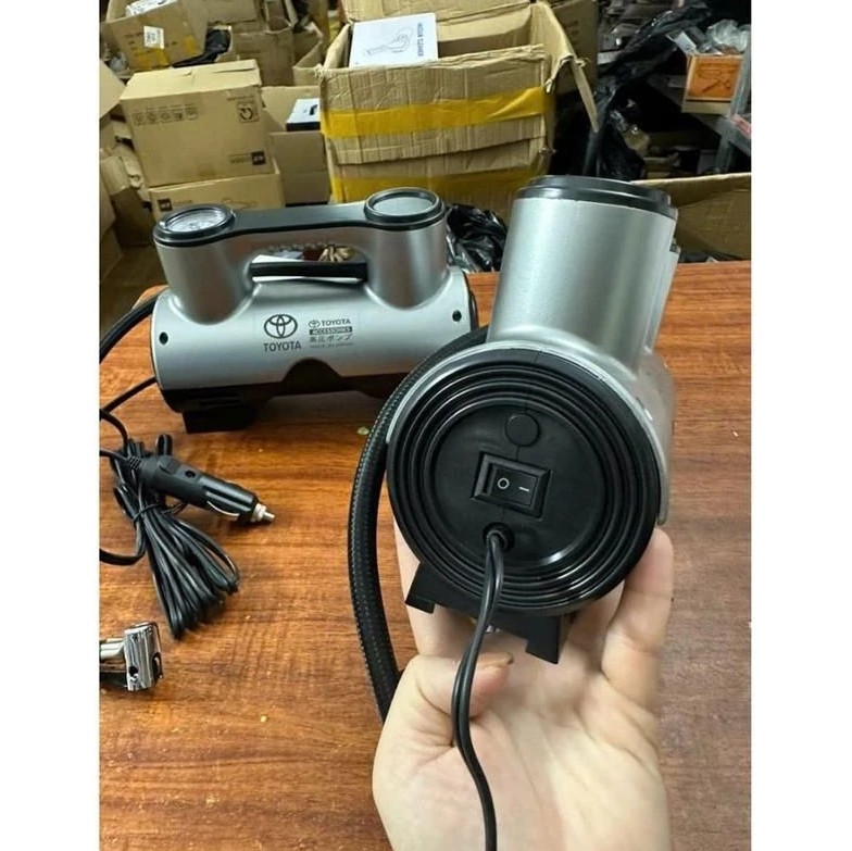 Bơm lốp ô tô Toyota 12V là thiết bị bơm hơi di động tiện lợi, được thiết kế nhỏ gọn nhưng mạnh mẽ, giúp bạn bơm lốp ô tô, xe máy, xe tải nhẹ nhanh chóng chỉ trong vài chục giây. Với công suất 120W, áp suất lên tới 100 PSI và tích hợp cảm biến tự ngắt, sản phẩm đảm bảo an toàn, chính xác và dễ thao tác ngay cả với người mới sử dụng.