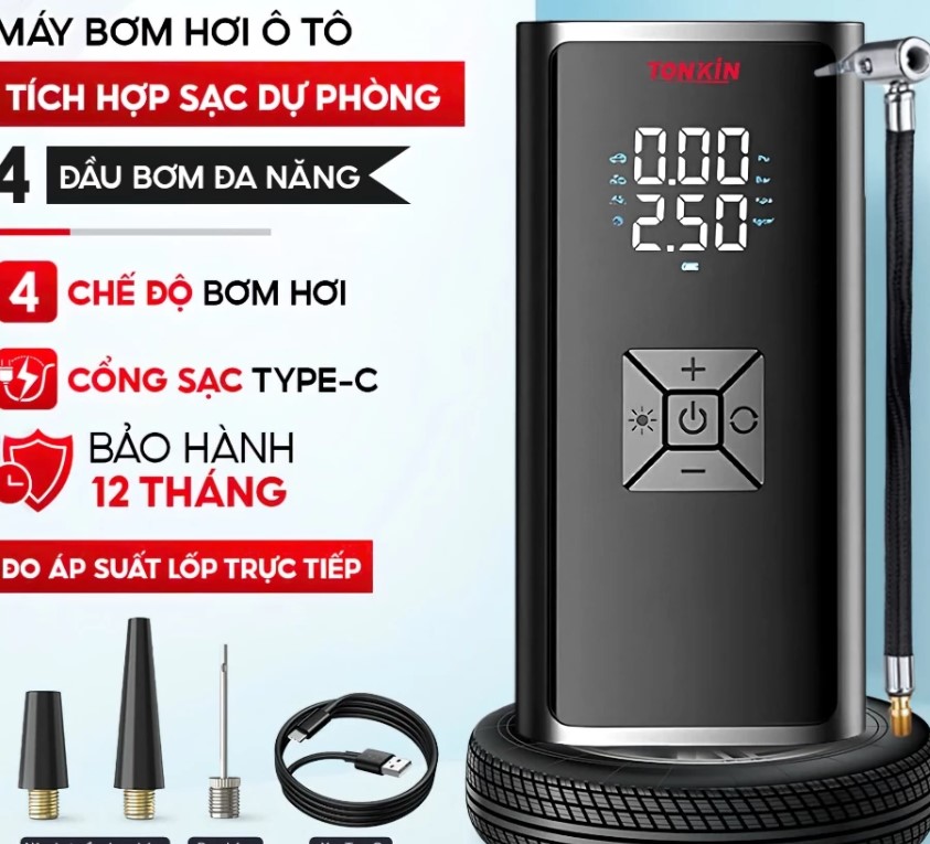 Bơm lốp ô tô Tonkin 120W là thiết bị tiện ích không thể thiếu cho mọi tài xế, đặc biệt những chuyến đi xa, xe địa hình, xe thương mại hay cả xe đạp, xe máy. Máy bơm lốp được trang bị động cơ siêu nạp nhập khẩu từ Đức, màn hình LED kép hiện đại, và khả năng bơm lốp tự động, chính xác – giúp bạn luôn duy trì áp suất lốp lý tưởng, nâng cao an toàn khi vận hành.