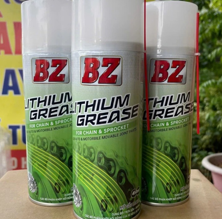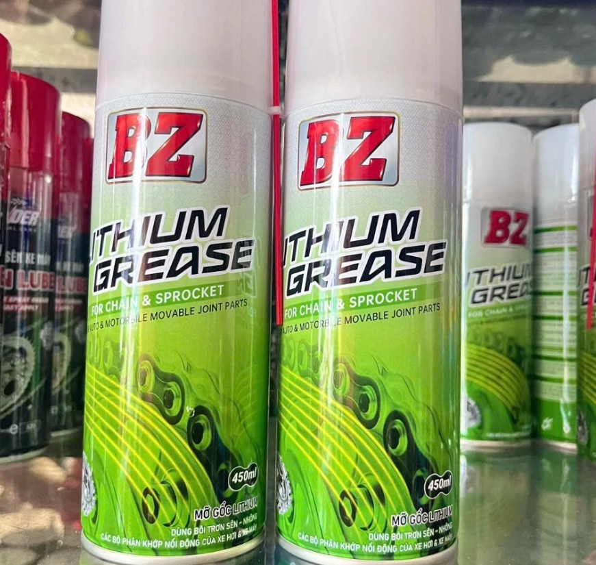 BZ mỡ bò xanh Lithium là dòng dưỡng sên cao cấp sử dụng gốc mỡ Lithium chất lượng cao, có độ bám dính tốt và khả năng chịu nhiệt ổn định. Khi xịt lên sên, sản phẩm tạo một lớp màng bôi trơn chắc chắn, hạn chế văng mỡ ra ngoài trong quá trình xe vận hành, đồng thời bảo vệ sên khỏi bụi bẩn, nước và hiện tượng oxy hóa gây gỉ sét.