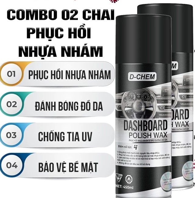 Nếu bạn muốn xe luôn mới, bề mặt nhựa nhám đều màu và bóng đẹp mà không tốn nhiều công sức, Combo 02 chai D-Chem chính hãng là lựa chọn hợp lý. Đây là giải pháp tiết kiệm, tiện lợi và đảm bảo hiệu quả cho cả nội thất và ngoại thất.