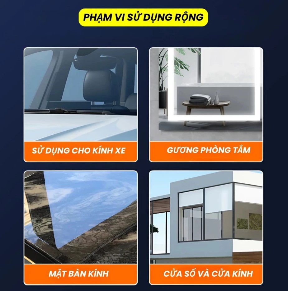 Phù hợp nhiều loại kính: kính lái ô tô, gương chiếu hậu, kính nhà tắm, cửa sổ, gương trang điểm.