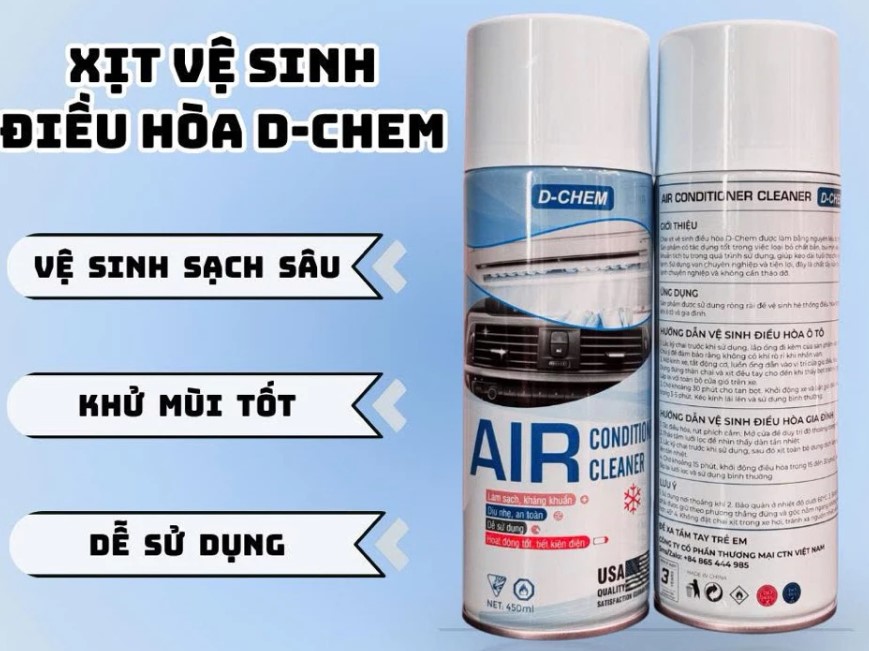 D-Chem Air Conditioner Cleaner 450ml là giải pháp vệ sinh điều hòa an toàn, hiệu quả và tiện lợi, giúp bọt xịt thẩm thấu sâu, làm sạch mọi ngóc ngách và bảo vệ hệ thống điều hòa. Việc sử dụng định kỳ sản phẩm này sẽ mang lại không khí trong lành, bảo vệ sức khỏe và kéo dài tuổi thọ cho dàn lạnh ô tô, giúp trải nghiệm lái xe luôn thoải mái và dễ chịu.