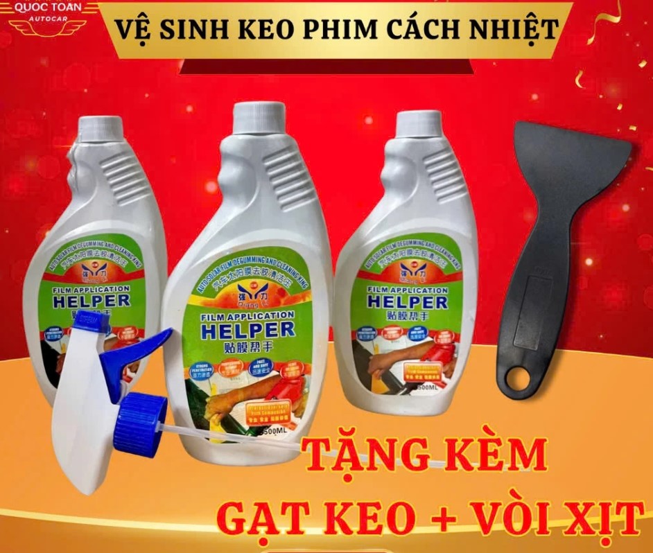 Chai vệ sinh phim cách nhiệt cũ là dung dịch tẩy keo chuyên dụng giúp làm sạch nhanh chóng lớp keo dán film, băng keo cũ trên xe ô tô, nhà kính, cửa sổ hoặc các bề mặt kính khác. Sản phẩm được thiết kế an toàn, tiện lợi, hiệu quả cao, là lựa chọn tối ưu cho thợ dán film và người dùng cá nhân.