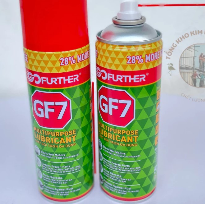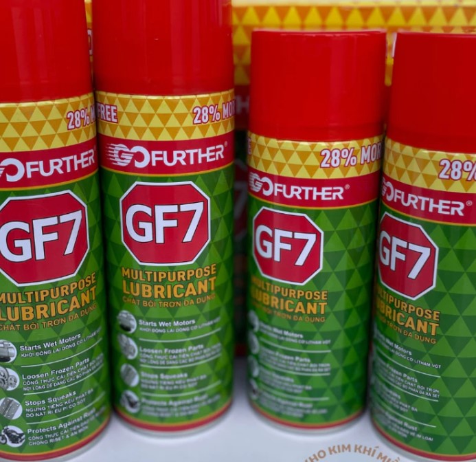 Chai xịt Gofurther GF7 là sản phẩm đa năng, hiệu quả và tiện dụng, giúp bôi trơn, chống rỉ sét, làm khô động cơ và loại bỏ tiếng kêu do ma sát. Sản phẩm phù hợp cho xe máy, xe đạp, máy móc công nghiệp, dụng cụ nông nghiệp và các thiết bị kim loại khác.