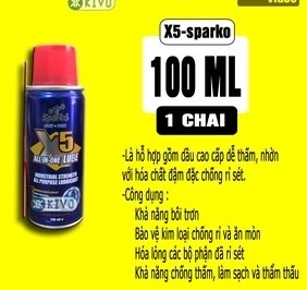 Sử dụng xe đạp, xe máy hay các thiết bị cơ khí, tình trạng rỉ sét, kẹt cứng và phát ra tiếng kêu khó chịu là vấn đề rất thường gặp. Chai xịt chống rỉ sét và bôi trơn X5 Sparko được thiết kế như một giải pháp đa năng, giúp làm sạch, bôi trơn, phá rỉ và bảo vệ bề mặt kim loại hiệu quả, mang lại sự vận hành trơn tru và bền bỉ cho thiết bị.
