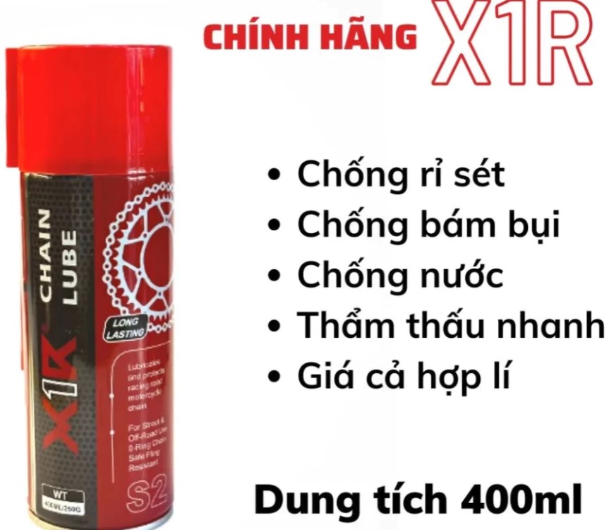 Chai xịt X1R Chain Lube 400ML là lựa chọn hoàn hảo cho những ai muốn bảo dưỡng sên xe máy, xe mô tô đúng cách, giảm mài mòn, chống kêu ồn và tăng độ bền cho xích trong thời gian dài.