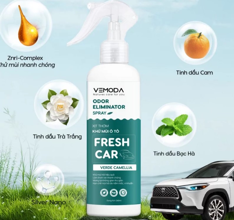 Bạn đang tìm kiếm giải pháp giữ cho xe hơi, phòng ốc luôn thơm mát và sạch sẽ mà không gây khó chịu? Chai xịt khử mùi Fresh Car của Vemoda là lựa chọn lý tưởng. Sản phẩm kết hợp hương thơm dễ chịu và thành phần Nano Bạc giúp loại bỏ nhanh chóng các mùi hôi khó chịu như khói thuốc, mùi ẩm mốc, mùi đồ ăn hay mùi vật dụng trong xe và không gian sống.
