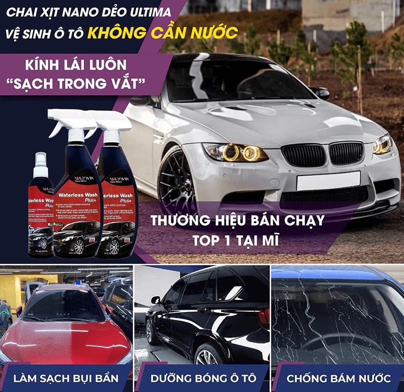 Với Ultima Nano Dẻo, bạn có thể rửa xe – phủ bóng – chống bám nước – làm trong kính chỉ bằng một chai duy nhất.