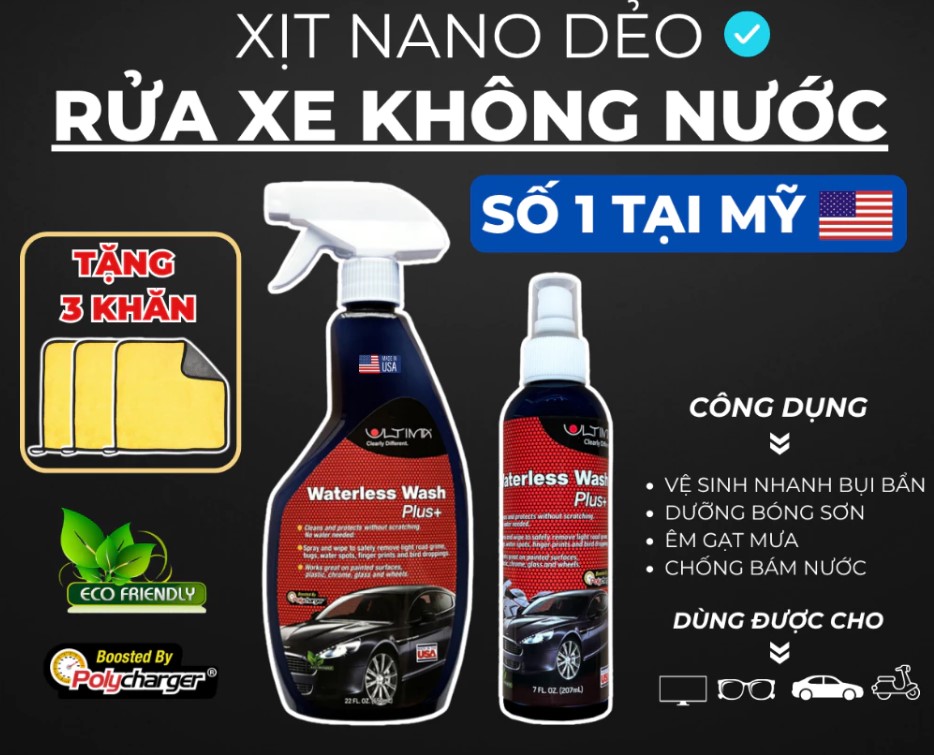 Rửa nhanh không cần nước, tiết kiệm thời gian, phù hợp rửa xe tại nhà, văn phòng, chung cư.