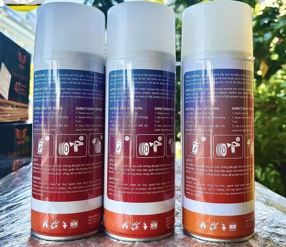 Bước 2: Xịt lên bề mặt nhựa hoặc lốp ở khoảng cách 10–12cm.