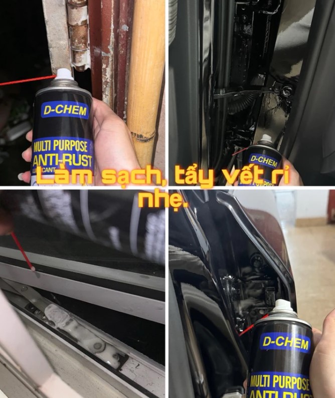 Sản phẩm không chỉ tẩy rỉ sét nhanh và bôi trơn hiệu quả, mà còn bảo vệ lâu dài các chi tiết kim loại trong xe cộ, dụng cụ cơ khí và các thiết bị gia dụng. Dễ sử dụng, không mùi khó chịu, thích hợp cho mọi gia đình, gara hoặc xưởng sản xuất.