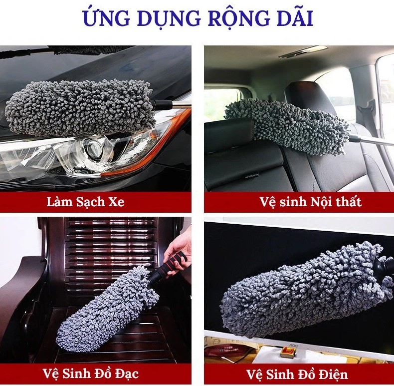 Ngoài việc làm sạch nội thất và bề mặt ngoại thất ô tô, chổi còn có thể lau chùi đồ gỗ, sofa, sàn nhà, cửa kính, quạt trần hoặc các thiết bị điện tử – giúp bạn tiết kiệm chi phí cho nhiều dụng cụ khác.
