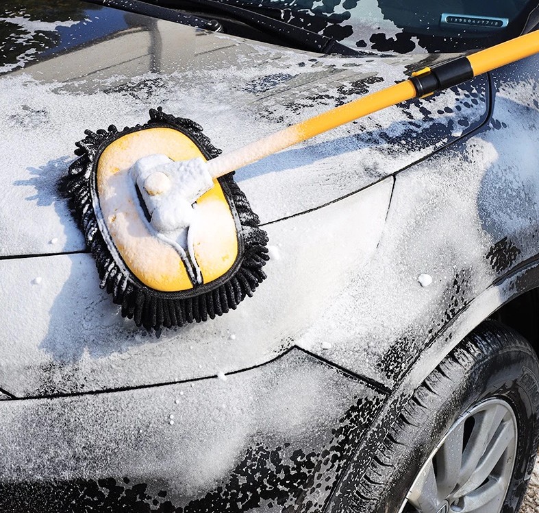Chổi rửa xe ô tô sợi mềm cong 15 độ, điều chỉnh độ dài linh hoạt. Thiết kế thông minh, thấm hút mạnh, không trầy sơn – giúp làm sạch xe nhanh chóng và tiện lợi.