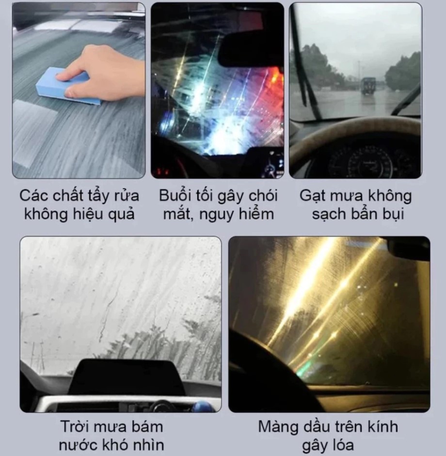 Sản phẩm giúp loại bỏ các vết ố, cặn canxi, dầu mỡ, bụi bẩn lâu ngày trên kính xe, mang lại bề mặt sáng trong như mới.