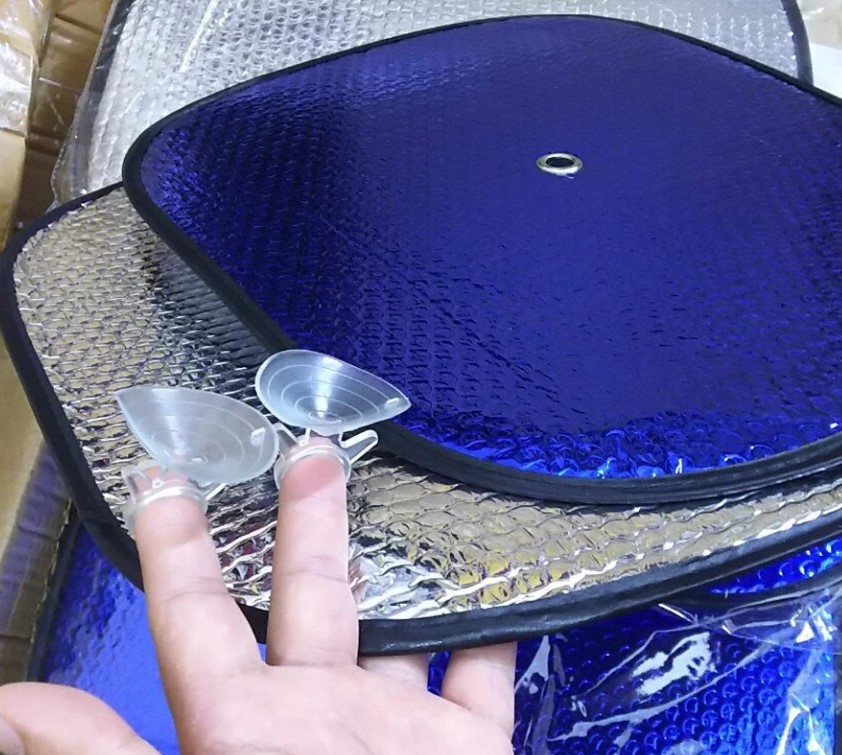 Miếng che nắng được trang bị núm hút cao su ở chính giữa, giúp cố định tấm chắn chắc chắn trên kính xe.