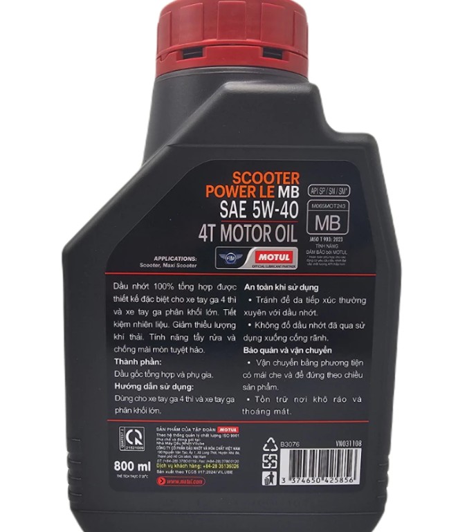 Đối với xe tay ga hiện đại, việc lựa chọn đúng loại nhớt chất lượng cao đóng vai trò rất quan trọng trong việc duy trì hiệu suất động cơ và tuổi thọ hộp số. Combo Motul Power LE 5W40 và Motul Scooter Gear Plus 120ml được sản xuất bởi Motul – thương hiệu dầu nhớt danh tiếng đến từ Pháp, đáp ứng các tiêu chuẩn khắt khe cho động cơ xe tay ga 4 thì dung tích nhớt 0.8 lít.