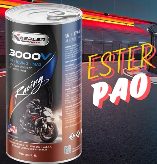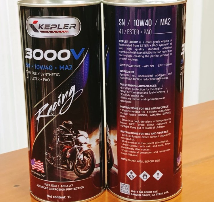 Dầu nhớt xe số Kepler 3000V SN 10W40 (1L) là giải pháp hiệu quả giúp bảo vệ động cơ, giảm ma sát và nâng cao trải nghiệm vận hành hằng ngày. Với nền dầu tổng hợp cao cấp Ester + PAO cùng phụ gia chất lượng từ Mỹ