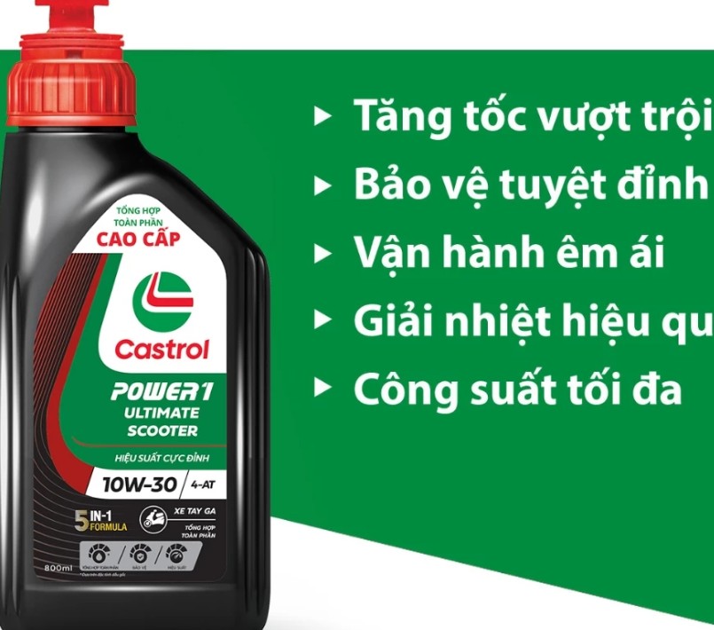 Nếu bạn đang tìm dầu nhớt cao cấp cho xe tay ga 4 thì, Castrol POWER1 Ultimate Scooter là lựa chọn tối ưu nhờ:
