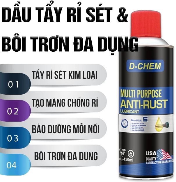 Dầu tẩy rỉ sét D-Chem Anti Rust là sản phẩm đa năng, tiện lợi và đáng tin cậy:
