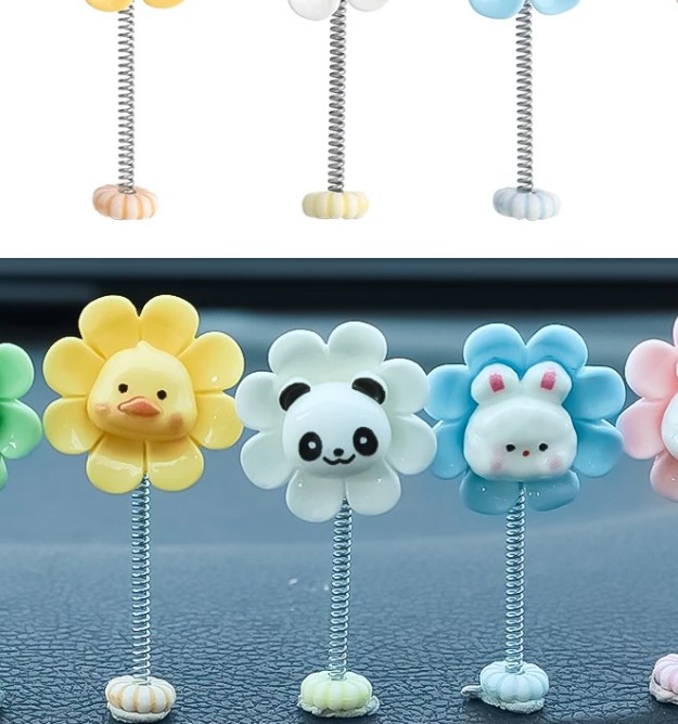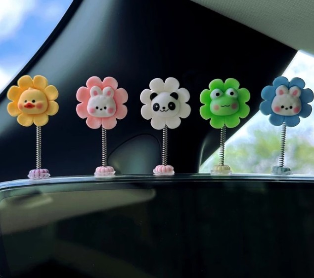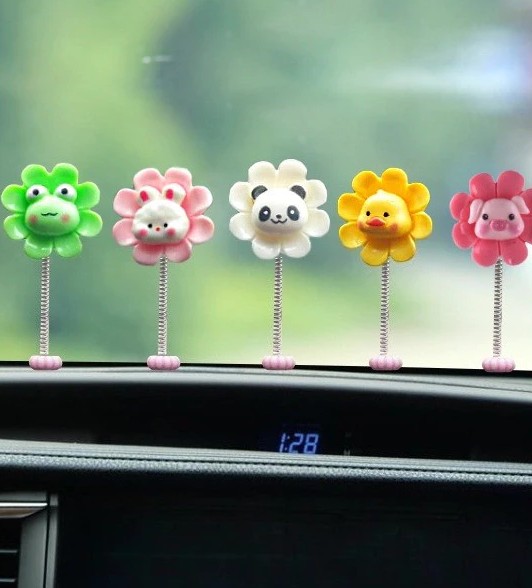 Các tạo hình hoạt hình như gà, gấu trúc, ếch, hoa được thiết kế đơn giản nhưng bắt mắt, phù hợp với nhiều phong cách trang trí khác nhau. Không chỉ dùng để trang trí taplo hoặc gương chiếu hậu ô tô, sản phẩm còn có thể đặt tại bàn học, bàn làm việc, phòng ngủ hay bất kỳ không gian nào bạn muốn thêm chút dễ thương và sinh động.