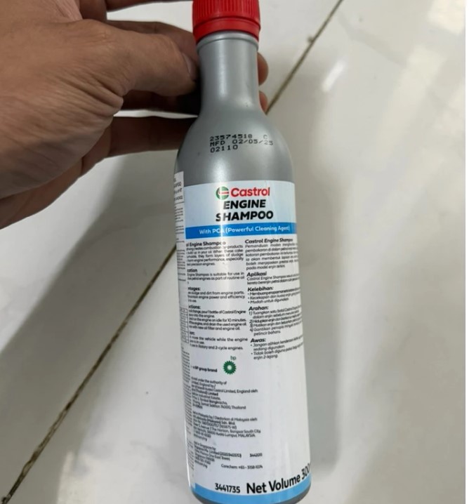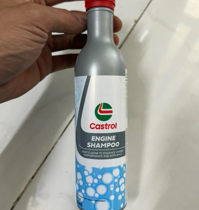 - Tắt máy và cho toàn bộ Castrol Engine Shampoo 300ml vào động cơ.