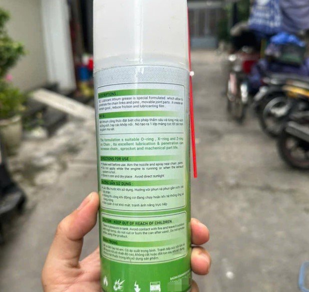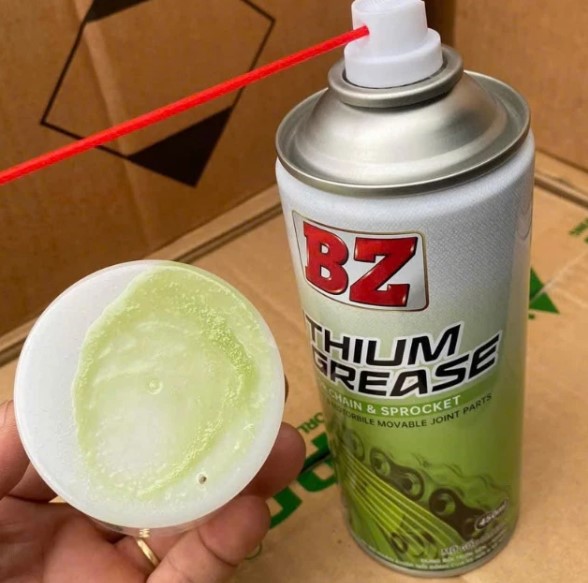 Xịt trực tiếp: Phun mỡ BZ lên toàn bộ mắt sên, con lăn và các khớp chuyển động, giữ khoảng cách 15-20cm.