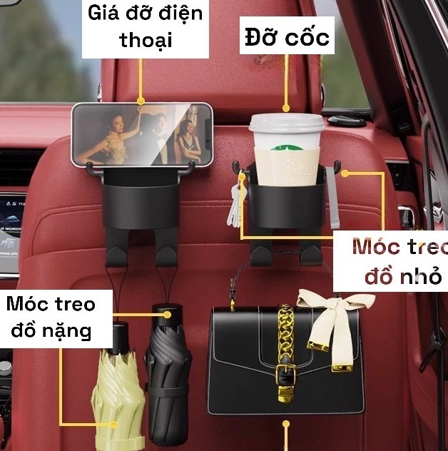 Giá đỡ cốc nước gắn sau ghế ô tô là phụ kiện tiện ích giúp tối ưu không gian nội thất và mang lại sự thoải mái cho người ngồi hàng ghế sau trong suốt hành trình. Với thiết kế thông minh kết hợp nhiều công năng trong một sản phẩm nhỏ gọn, giá đỡ không chỉ giúp cố định cốc nước an toàn mà còn tích hợp móc treo đa năng và khả năng đỡ điện thoại, đáp ứng tốt nhu cầu sinh hoạt, giải trí và làm việc trên xe.