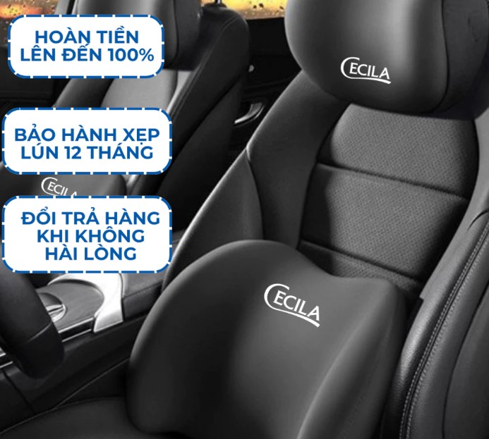 Gối tựa đầu và gối tựa lưng ô tô CECILA là bộ phụ kiện hỗ trợ sức khỏe được thiết kế dành riêng cho những người thường xuyên lái xe, ngồi làm việc lâu hoặc phải duy trì tư thế ngồi cố định trong thời gian dài. Sản phẩm sử dụng chất liệu cao su non Memory Foam cao cấp kết hợp thiết kế công thái học, giúp nâng đỡ hiệu quả vùng cổ, vai gáy và thắt lưng, từ đó giảm đau mỏi và mang lại cảm giác thoải mái hơn trong suốt hành trình.