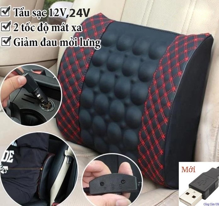 Gối tựa lưng massage ô tô dùng điện 12V – 24V là giải pháp tiện lợi giúp giảm mỏi lưng, thư giãn cơ thể và nâng cao sự thoải mái khi lái xe, đặc biệt phù hợp cho những ai thường xuyên di chuyển hoặc lái xe đường dài.