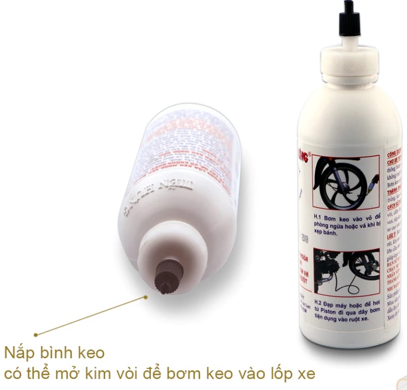 Gắn vòi chai keo vào và bơm keo trực tiếp vào ruột/lốp.