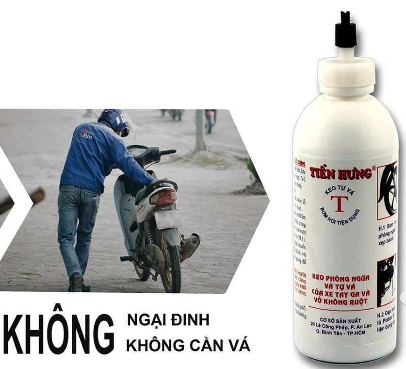 Keo tự vá Tiến Hưng là sản phẩm chuyên dụng giúp vá lỗ thủng nhỏ và chống xì hơi cho nhiều loại bánh xe. Sản phẩm hoạt động theo cơ chế tự trám kín lỗ thủng nhờ lớp keo thông minh bám chặt vào khu vực bị đâm thủng, giúp bạn có thể tiếp tục di chuyển an toàn mà không cần tháo bánh hay mang xe đi sửa ngay.