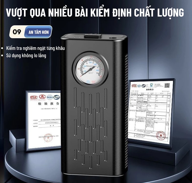 Với thiết kế nhỏ gọn – không dây – pin sạc tích hợp, máy mang lại hiệu suất mạnh mẽ và độ chính xác cao, rất tiện lợi khi mang theo trong xe ô tô để sử dụng khi cần.