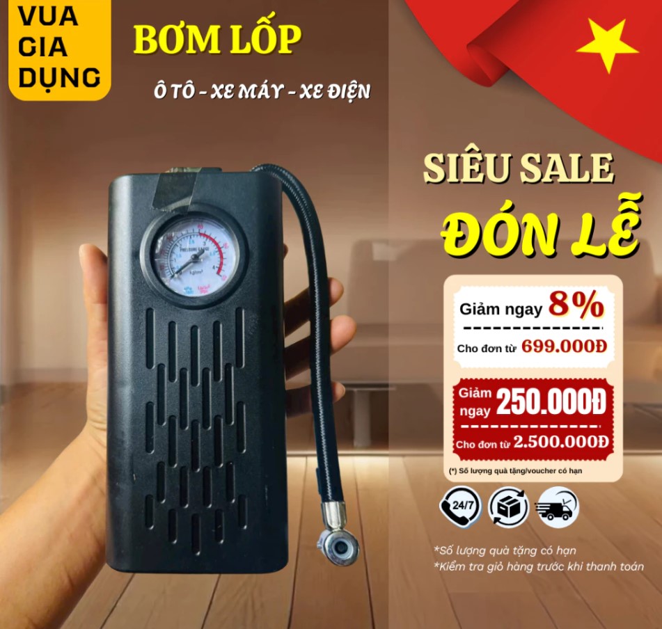 Máy bơm lốp ô tô 12V mini kỹ thuật số là thiết bị bơm hơi đa năng thế hệ mới, giúp bạn dễ dàng bơm lốp xe hơi, xe máy, xe đạp hoặc các vật dụng bơm hơi khác ngay tại nhà hoặc trên đường.