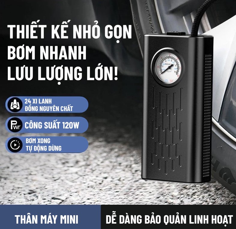Máy bơm lốp xe ô tô mini 12V là thiết bị không thể thiếu trên mỗi chiếc xe, hỗ trợ bơm hơi nhanh chóng khi lốp non hoặc gặp tình huống khẩn cấp. Sản phẩm được trang bị công nghệ bơm điện tử hiện đại, đo áp suất chính xác và hoạt động ổn định, giúp bạn xử lý mọi sự cố ngay tại nhà mà không cần đến tiệm.