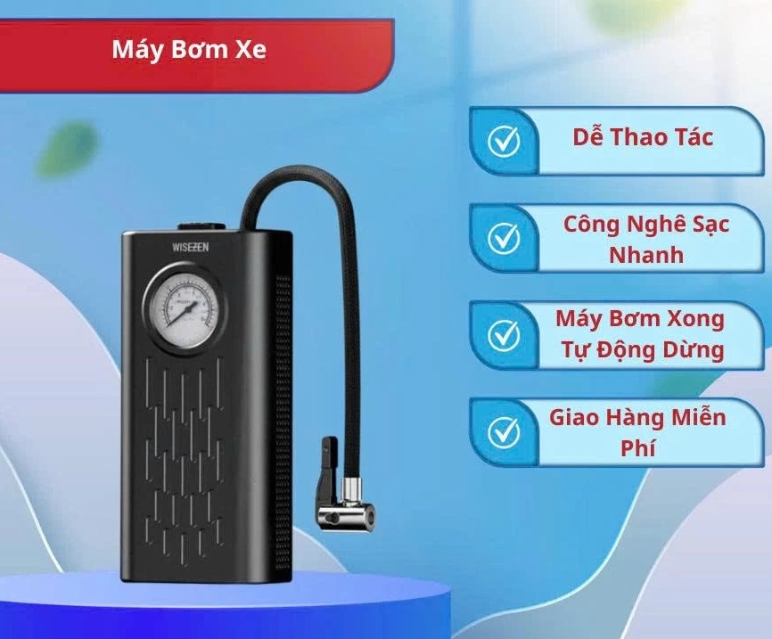Máy bơm lốp xe hơi Wisezen là giải pháp tiện lợi cho mọi hành trình. Với thiết kế nhỏ gọn, cơ chế bơm mạnh mẽ và khả năng hiển thị áp suất cực kỳ chuẩn xác, thiết bị giúp bạn tự xử lý tình trạng lốp non, xì hơi trong vài phút mà không cần ghé tiệm sửa xe. Đây là phụ kiện thông minh cần có trong cốp xe của mọi gia đình.