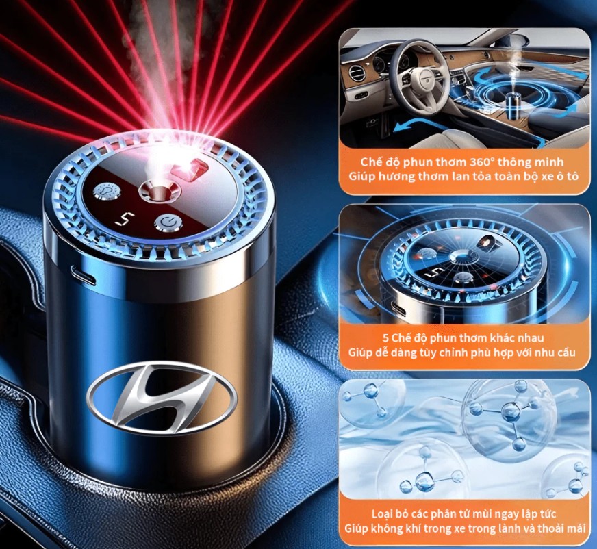 Trong không gian kín như ô tô, mùi hôi, vi khuẩn và không khí khô có thể khiến người ngồi trong xe cảm thấy khó chịu, mệt mỏi, đặc biệt khi di chuyển đường dài. Máy khuếch tán tinh dầu nước hoa ô tô cao cấp có logo hãng xe là giải pháp toàn diện giúp làm sạch không khí, lan tỏa hương thơm dễ chịu và nâng tầm đẳng cấp nội thất xe. Sản phẩm ứng dụng công nghệ AI thông minh, thiết kế sang trọng, vận hành tự động, mang lại trải nghiệm thư giãn và tiện nghi tối đa cho người dùng.