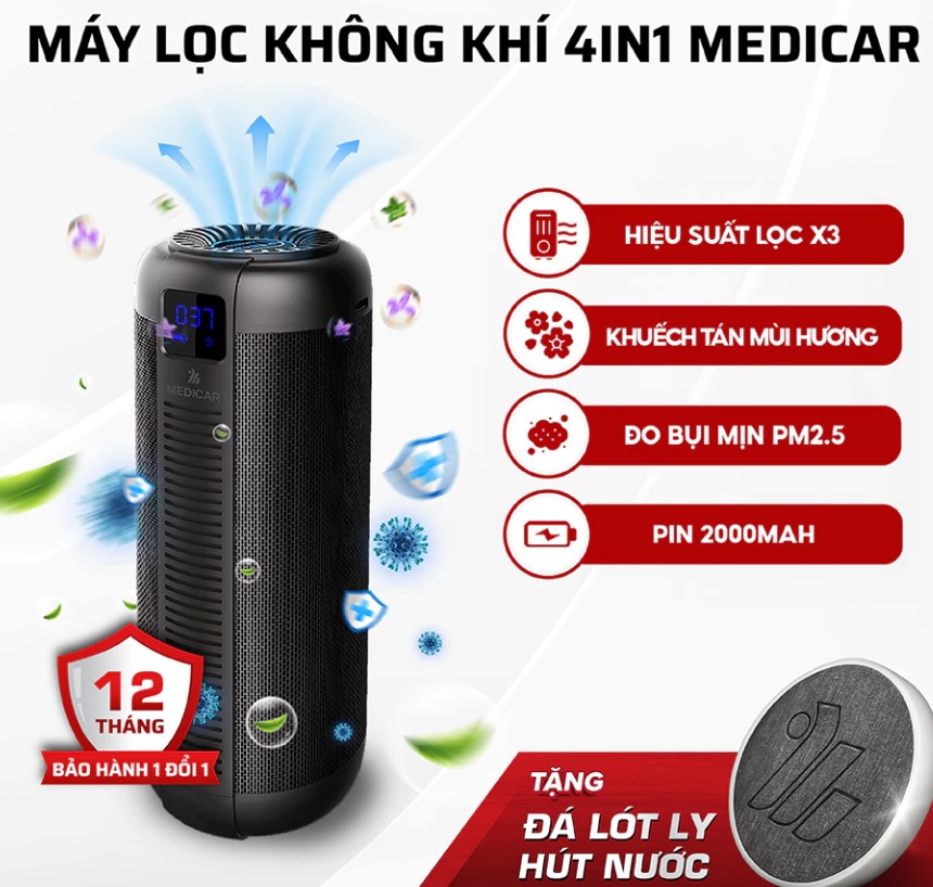 Máy lọc không khí & khử mùi xe ô tô cao cấp 4in1 MEDICAR là giải pháp toàn diện giúp làm sạch không khí, khử mùi, diệt khuẩn và tạo hương thơm thư giãn cho không gian xe hơi. Với thiết kế nhỏ gọn, vận hành êm ái và tích hợp nhiều công nghệ hiện đại, sản phẩm mang đến môi trường trong lành, an toàn hơn cho sức khỏe và nâng cao trải nghiệm trên mỗi chuyến đi.
