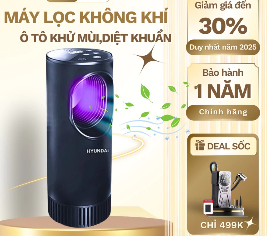 Máy lọc không khí ô tô công nghệ ion âm là giải pháp tối ưu giúp làm sạch và cải thiện chất lượng không khí trong xe hơi. Sản phẩm kết hợp nhiều chức năng trong một thiết bị nhỏ gọn: lọc bụi mịn, diệt khuẩn, khử mùi khó chịu, cân bằng không khí và hỗ trợ xông tinh dầu thư giãn. Nhờ ứng dụng công nghệ lọc HEPA 13 tiên tiến cùng khả năng tạo ion âm, máy giúp mang lại bầu không khí trong lành, dễ chịu, góp phần bảo vệ sức khỏe cho người ngồi trong xe, đặc biệt trong môi trường kín và thường xuyên tiếp xúc khói bụi như ô tô.