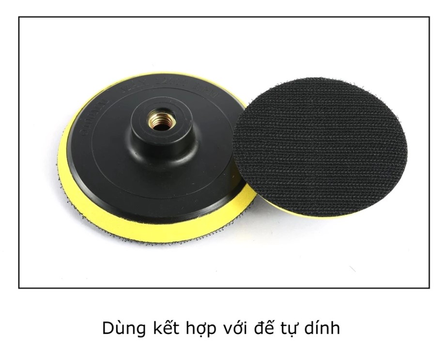Pad nỉ có lớp dính velcro (tự dính) ở mặt sau, dễ dàng gắn vào đĩa chà hoặc đế đánh bóng của các loại máy phổ biến như: